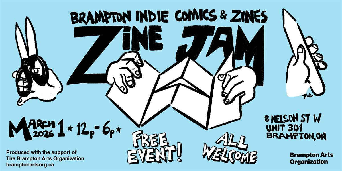 Come spend the afternoon putting together (yes, cutting stapling, embelleshing) our alphabet zine/comic all about Brampton! We'll be chatting about comics and zines, trading our creations, and also enjoying some live comic and zine readings from local comic artists and writers and zinesters.
