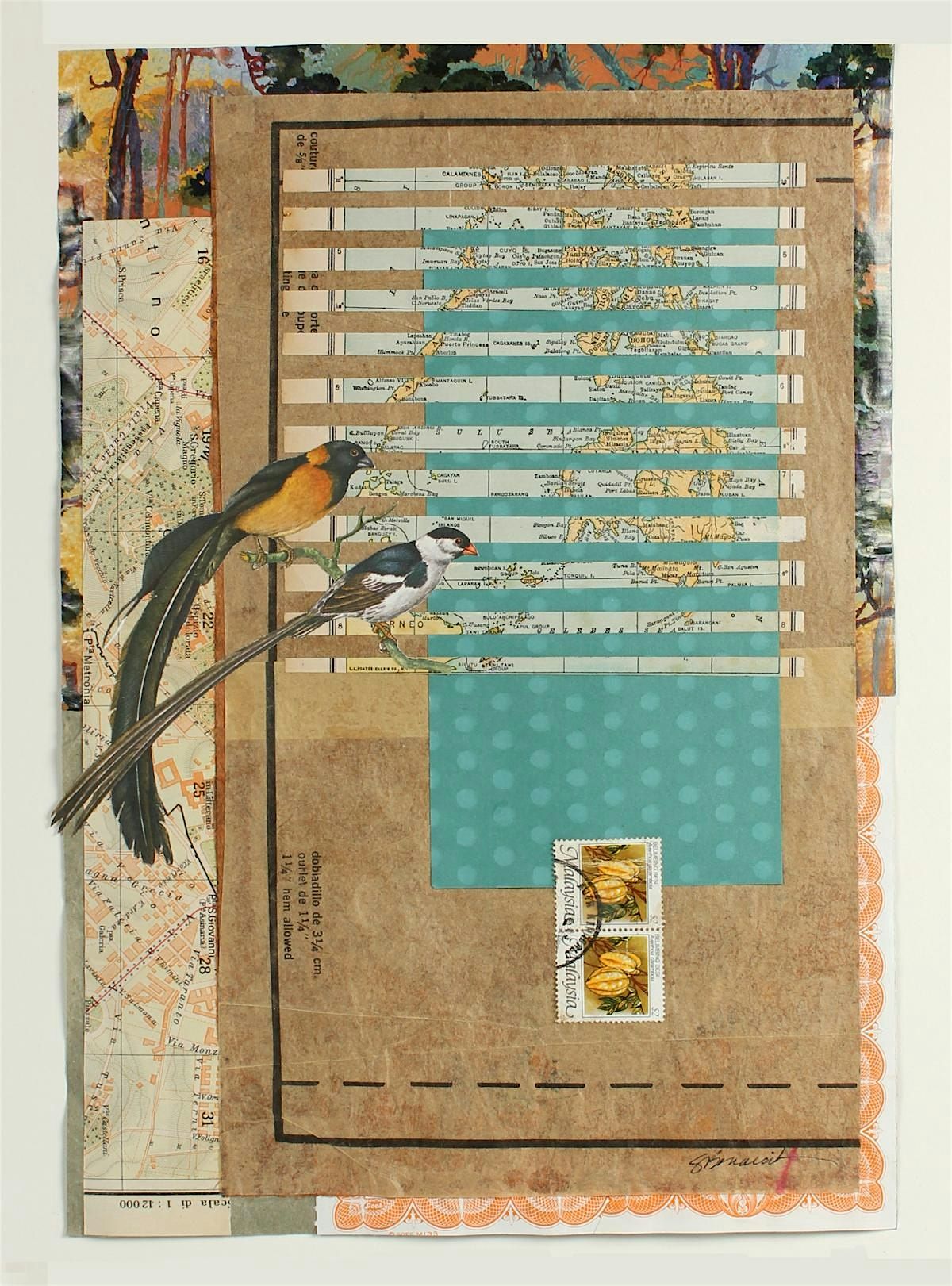 A selection of 5-7 papers of interest that you are willing to deconstruct. Good ideas are: gel plate prints, unfinished paintings or drawings, collected papers such as gift wrap, old maps, tissue papers, art papers, really anything that has some color or pattern will work well.