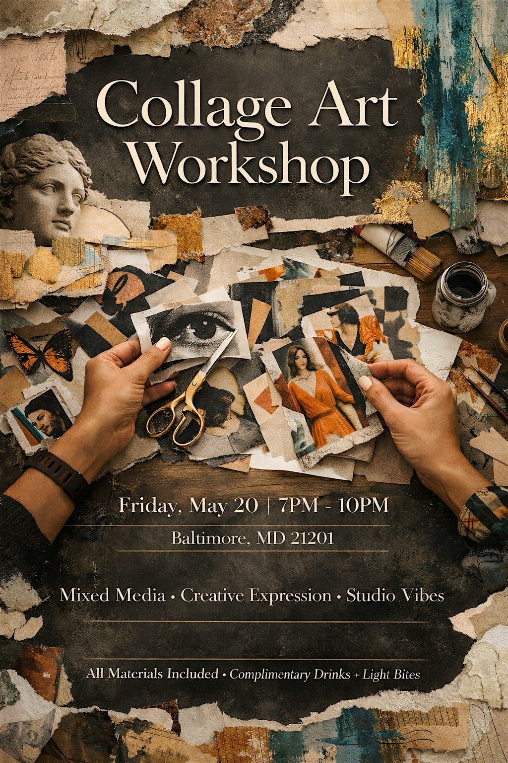This is not your typical workshop. It’s a guided, immersive collage experience designed for those who want to create something meaningful, bold, and personal.