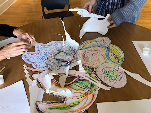 You’ll learn techniques for cutting, folding, and expanding from 2-d to 3-d. Let your subconscious wander off-leash! Open up the possibilities by bringing a friend, relative or neighbor!