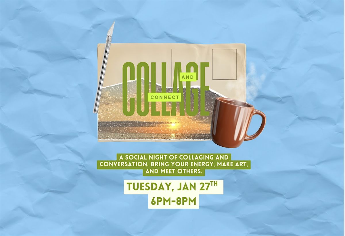 Collage & Connect is a social creative night designed for our extroverts, conversationalists, Chatty Cathys, and anyone who enjoys making art while talking and connecting. We invite you to bring your energy, your curiosity, and your openness to meeting others in a creative environment.