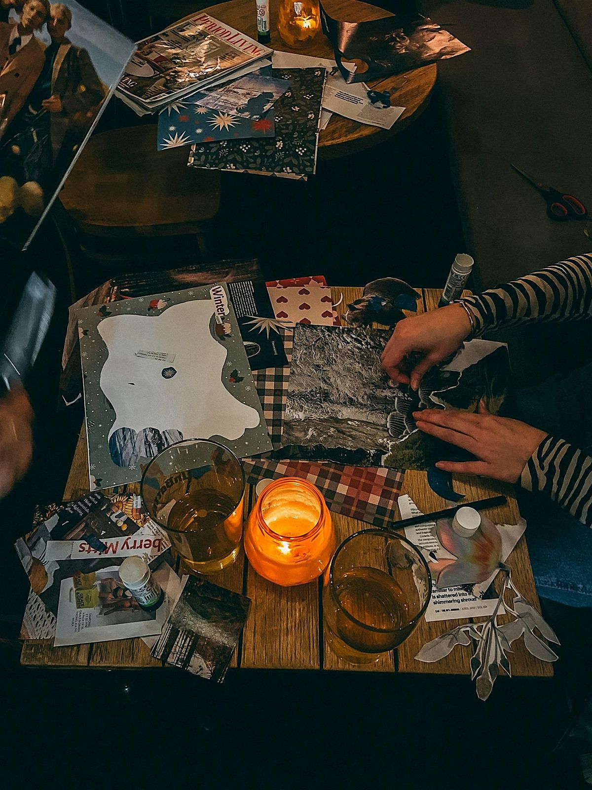 Whether you're an experienced artist or just fancy trying something new, this is your chance to unwind, create, and have some fun in great company and cosy candlelight.Our resident artist Kira will be leading the session, sharing ideas and tips to help you bring your collage to life.