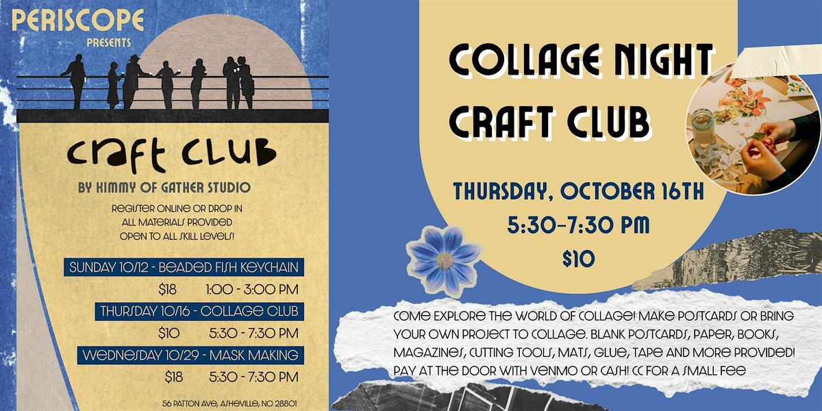 Join us for Collage Night @ Periscope with Gather Craft Club at Periscope Bar on October 16th from 5:30-7:30 pm!