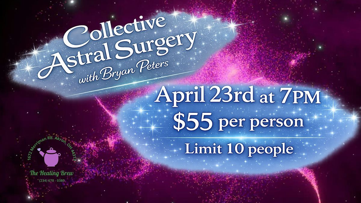 #CollectiveAstralSurgery #AstralSurgery #BryanPeters #EnergyHealing #SpiritualHealing #EnergyWork #AstralHealing #QuantumHealing #SpiritualAwakening #HigherConsciousness #LightWorker #SpiritualTransformation #EnergyClearing #AuricHealing #HealingEnergy #IntuitiveHealing #VibrationalHealing #SpiritualCommunity #AkronSpiritual #AkronEvents #OhioSpiritualCommunity #TheHealingBrew #MeditationExperience #GroupHealing #SpiritualGrowth