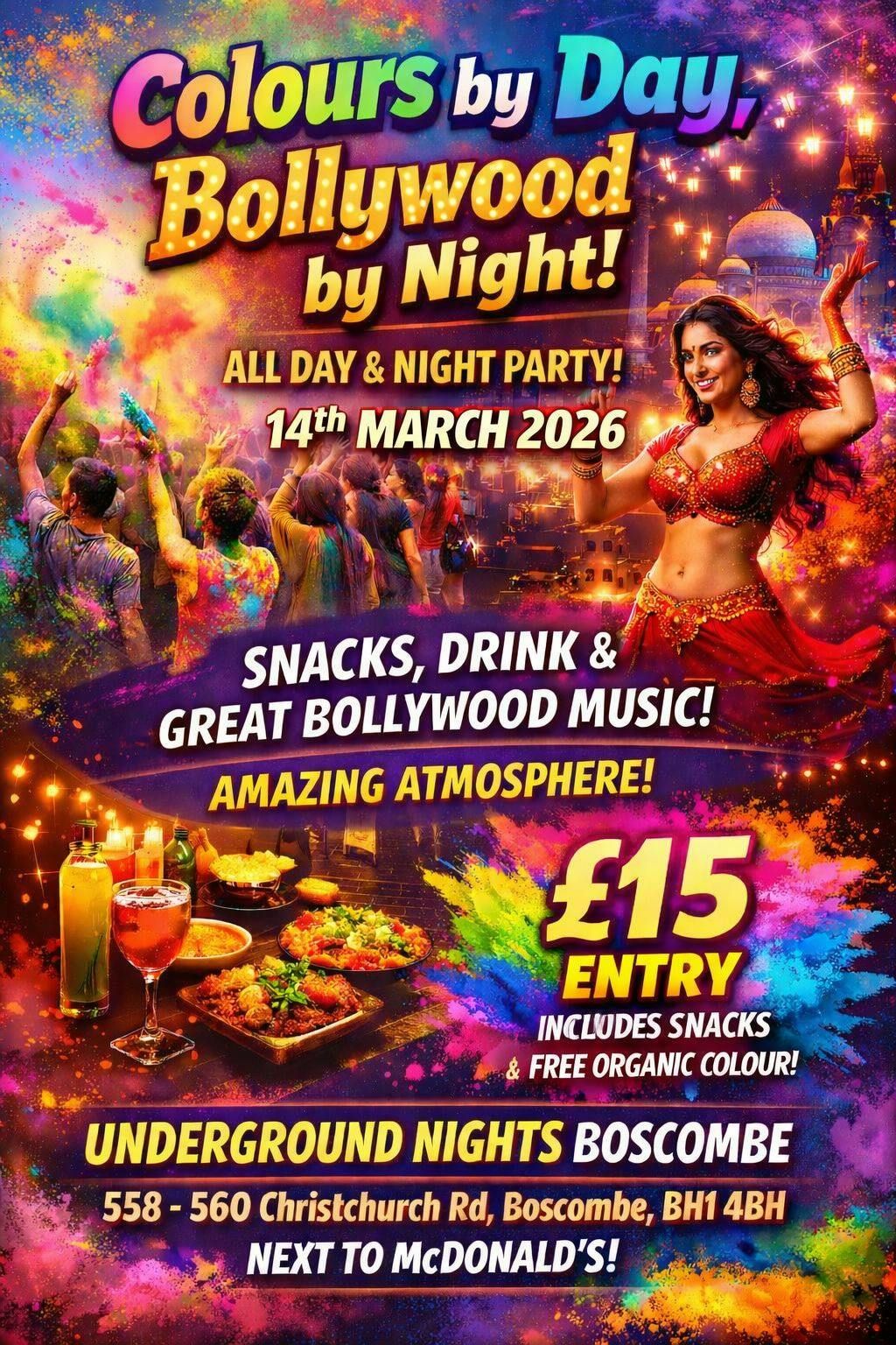 🌈 COLOURS BY DAY, BOLLYWOOD BY NIGHT! 🌙📍 Underground Nights, Boscombe