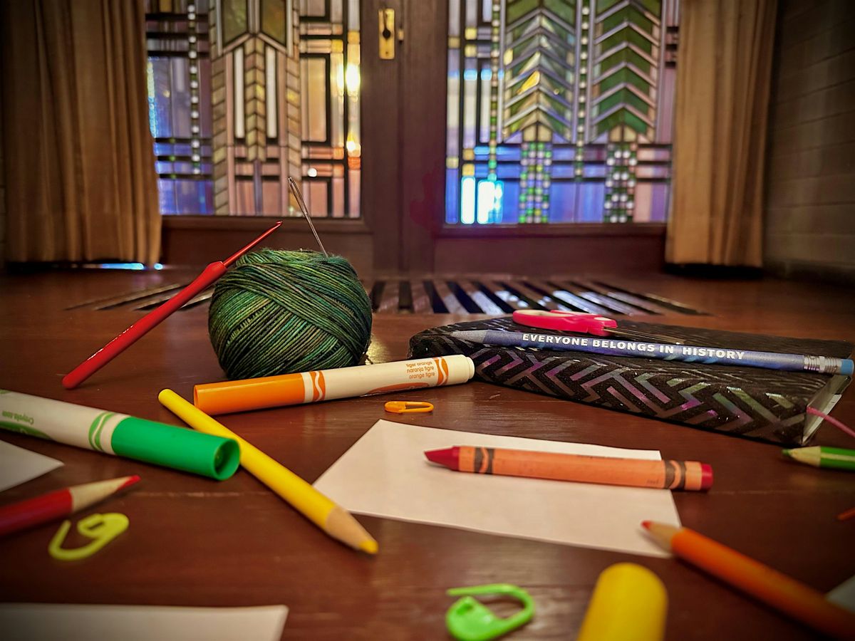 Bring your own materials and spend some time working on a creative project in the inspiring atmosphere of the Dana-Thomas House. Whether your interest is coloring, sketching, knitting, crochet, embroidery, origami, diamond art, watercolors or another type of project, we will provide you with space to work and engage in conversation with other community members who share your interest. Individuals, families and small groups are all welcome. This event is free and open to all ages; children must be accompanied by a responsible adult. Reservations are recommended.