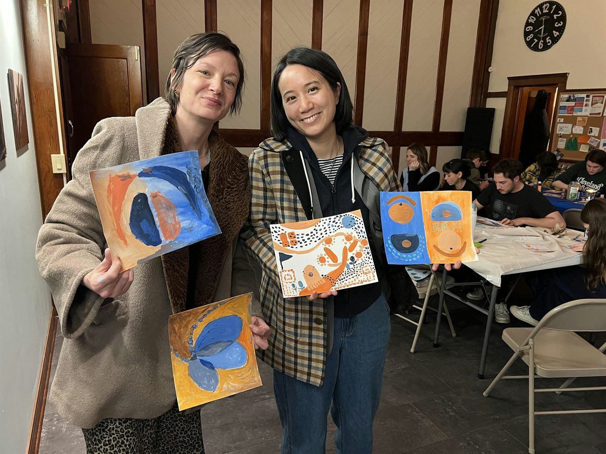 This is a low-pressure, playful art class focused on color, pattern, and experimentation. We’ll explore basic color theory (and when to break the rules), push paint around, and make art purely for fun. No experience or supplies needed—just show up after work, unwind, and let your brain exhale. Think of it as a yoga class for your mind: slow down, breathe, move with the brush, and reconnect with your body. Bonus: grab ramen or ice cream at Mason’s next door and make a night of it.