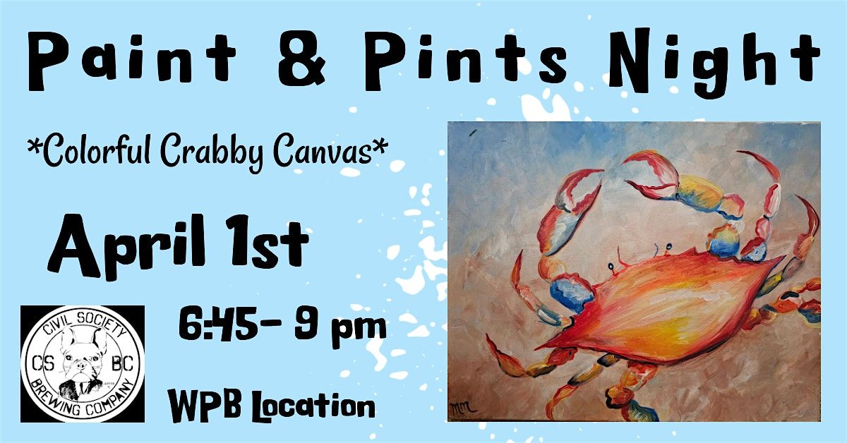 Join us for a fun and creative evening at Civil Society Brewing Co.! Whether you're a pro or just want to try something new, this paint night is all about letting loose and having a blast. We'll be painting colorful crabs and enjoying great vibes together.