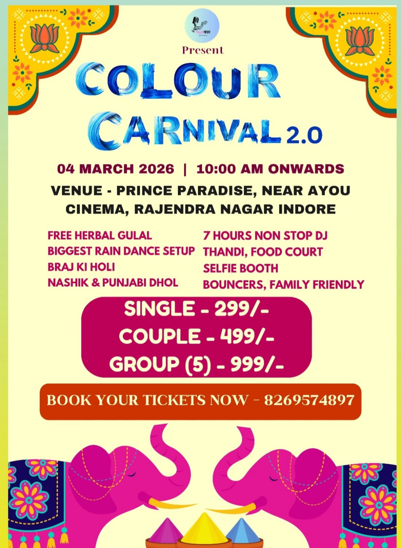 Don't miss out on the best Holi event in Indore! Secure your tickets now on AllEvents and get ready to create unforgettable memories at Colour Carnival 2.0!.