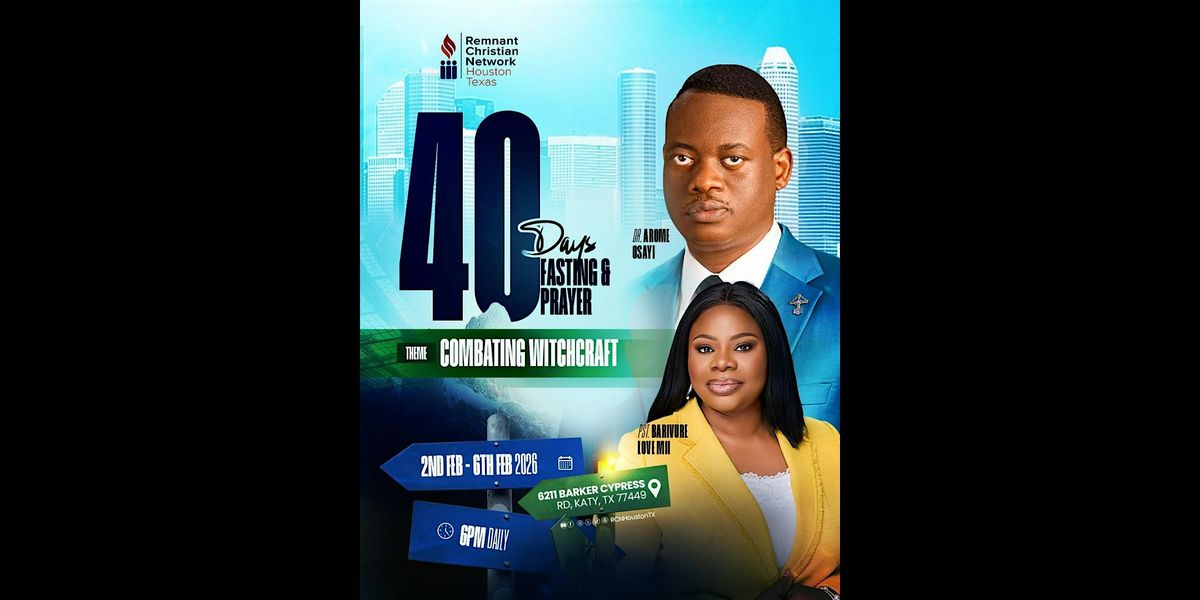 Apostle Arome Osayi and Pastor Barivure Love Mii will be ministering in Houston from February 2–6 as part of the 40-day fast across four states.