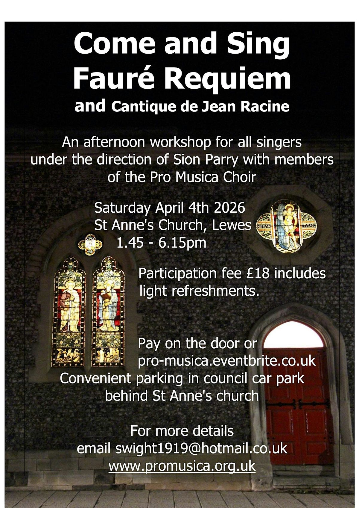Come and Sing the Faure Requiem and Cantique de Jean Racine. Director Sion Parry with Pro Musica choir members. Light refreshments included.