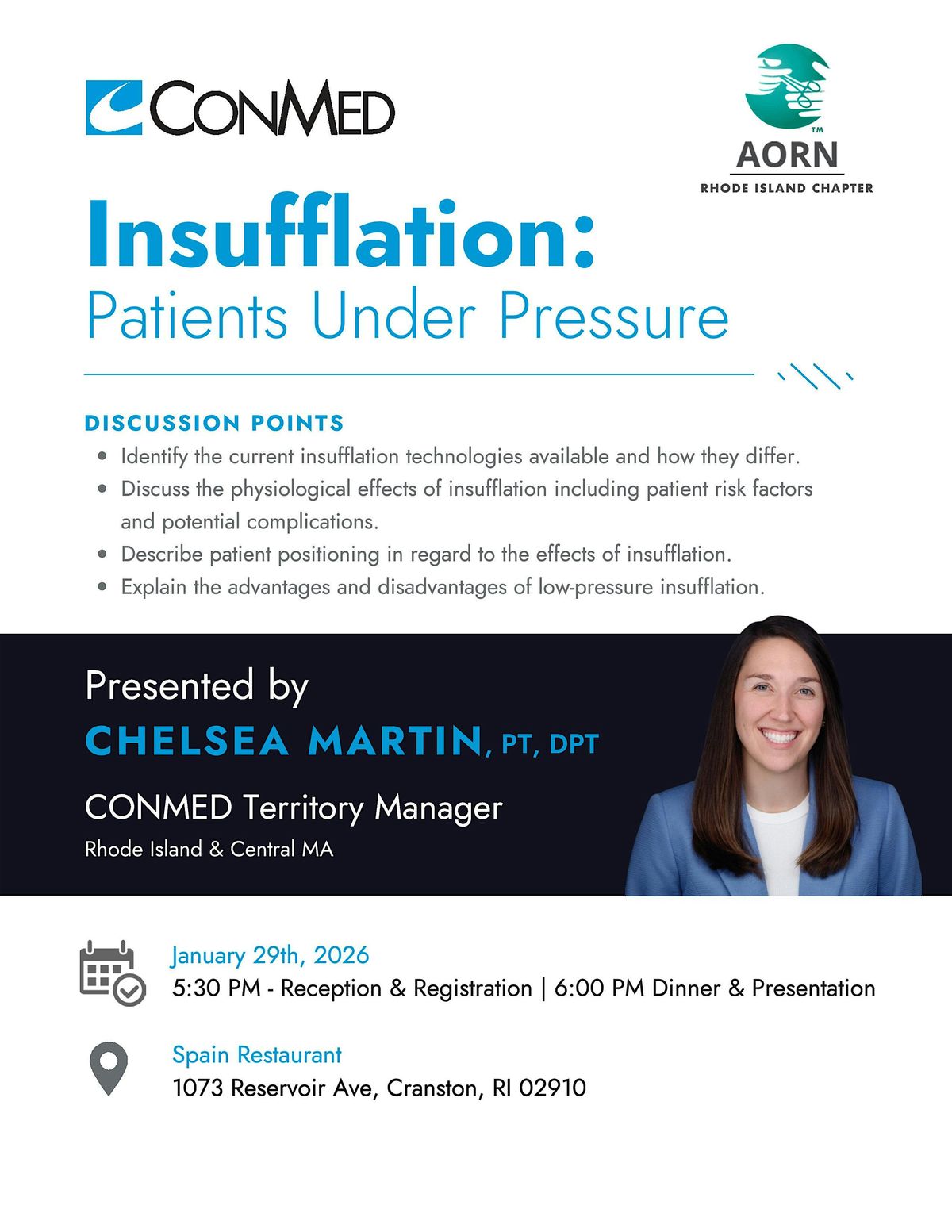 Come join us for great presentation w CONMED Insufflation dinner and CEU