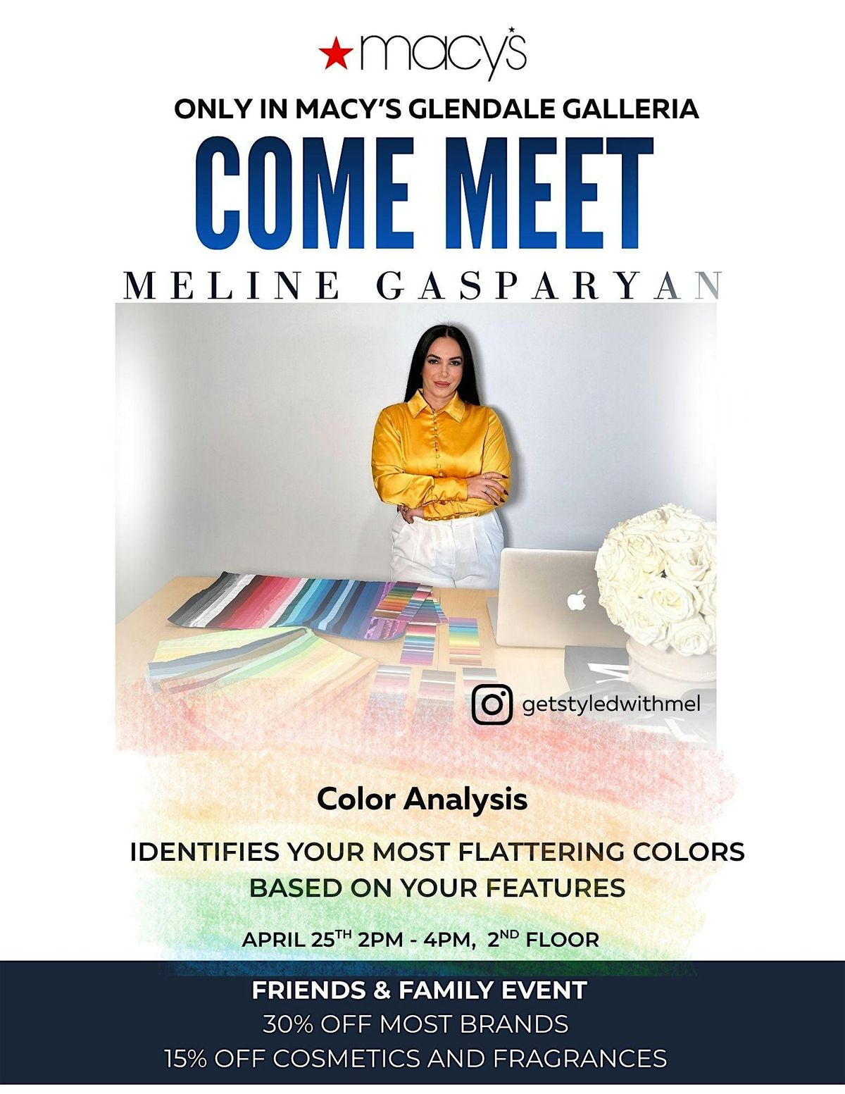 Hey there! We’d love for you to join us and meet Meline Gasparyan in person for a fun and personalized color analysis experience. She’ll help you discover the colors that truly flatter your unique features.