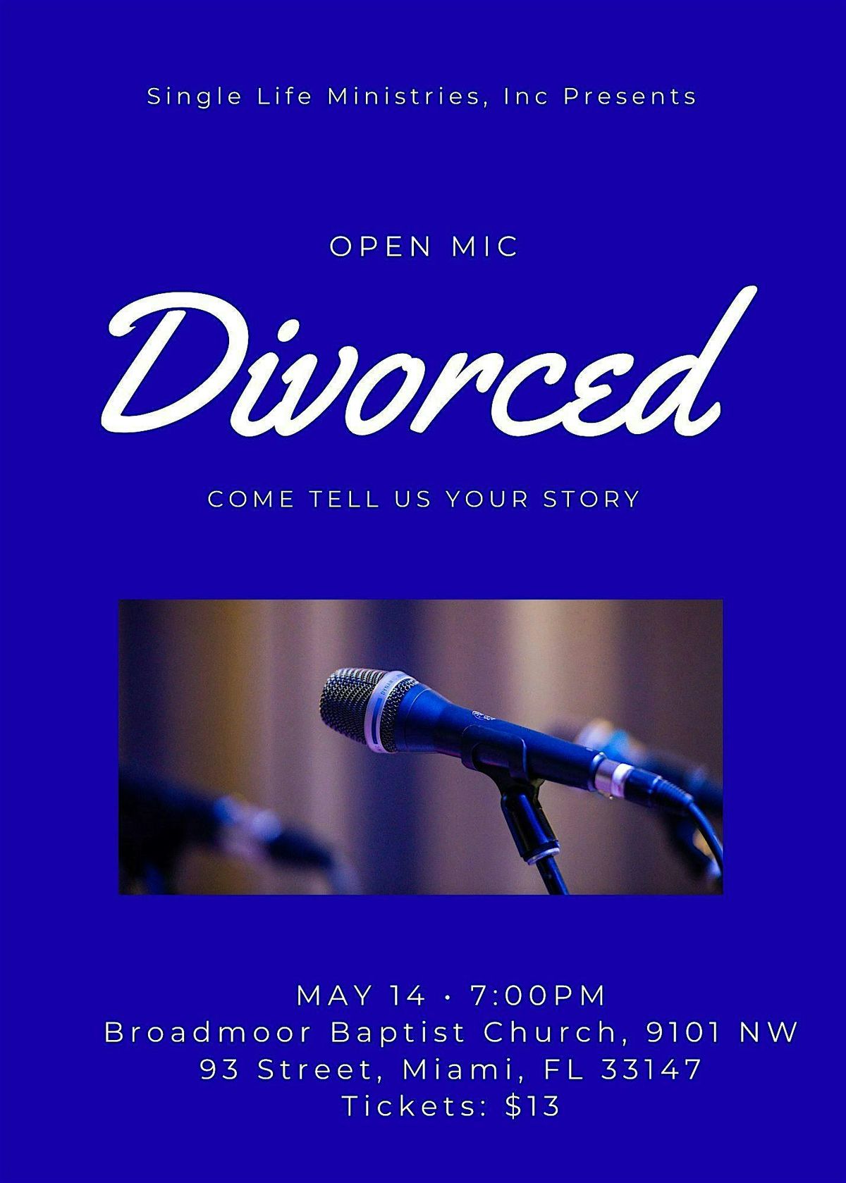 This open-mic style storytelling event centers the theme Divorced—not as a label, but as a lived experience. Come share a 5-minute story about what you’ve learned since your divorce. What have you discovered about yourself? What would you tell your younger self now? How has God healed you, or where are you still healing?