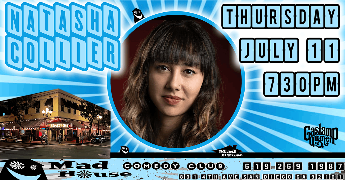 Welcome to the Comedian Natasha Collier live event in San Diego at the Mad House Comedy Club! Get ready to laugh your socks off as Natasha takes the stage on Thu Jul 11 2024 at 8:00 PM (Pacific Daylight Time). Don't miss this chance to see Natasha's hilarious jokes and comedic timing in person. It's going to be a night full of laughter and fun at the Mad House Comedy Club. Grab your friends and come join us for a memorable evening!