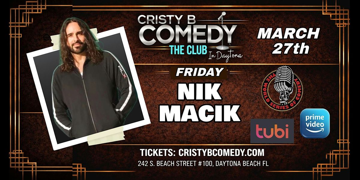 Nik Macik is known for his clever refreshing style of comedy and uniquely original perspectives on life, dating and everything in between. Nik got his start with Comedy Key West and has co-starred in several Amazon Prime Films along with a Tubi TV series.