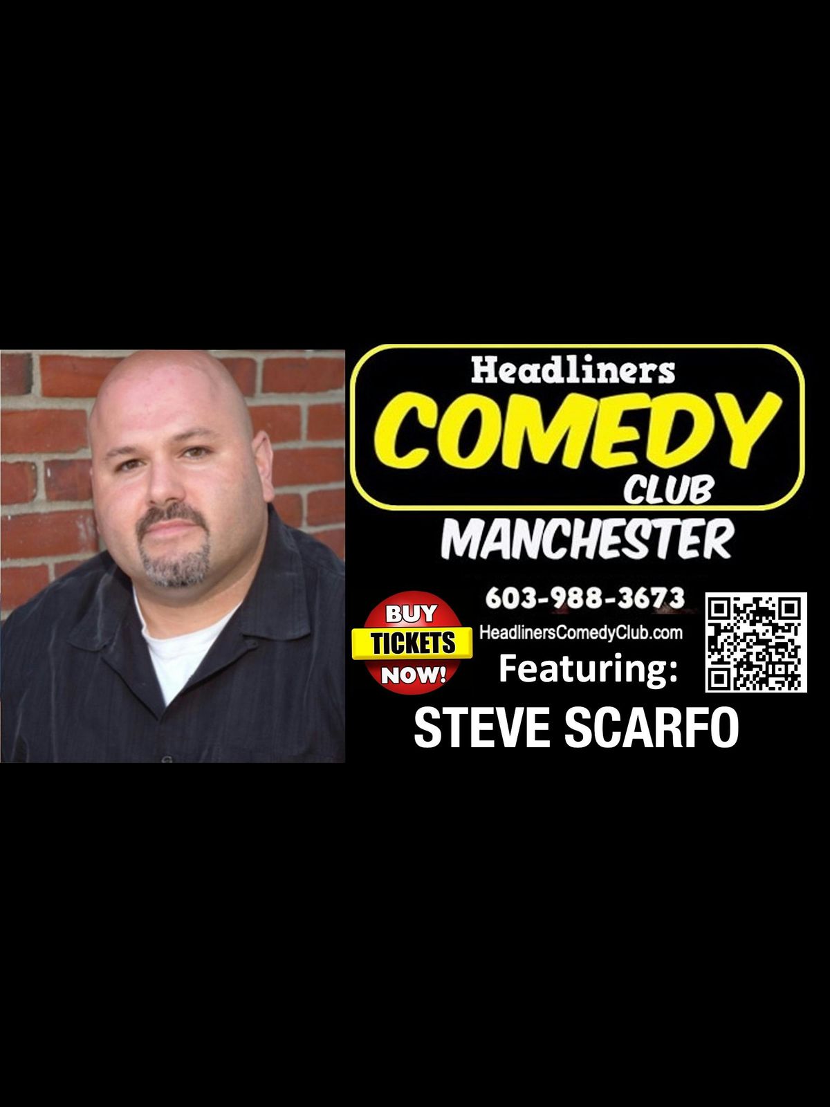 Join us in person for a night of fun with Comedian Steve Scarfo hitting the stage in Manchester, NH. It's your chance to catch Steve's hilarious take on life, culture, and everything in between. Bring your friends, grab your seat, and prepare for a comedy show that’ll keep you giggling all night long!
