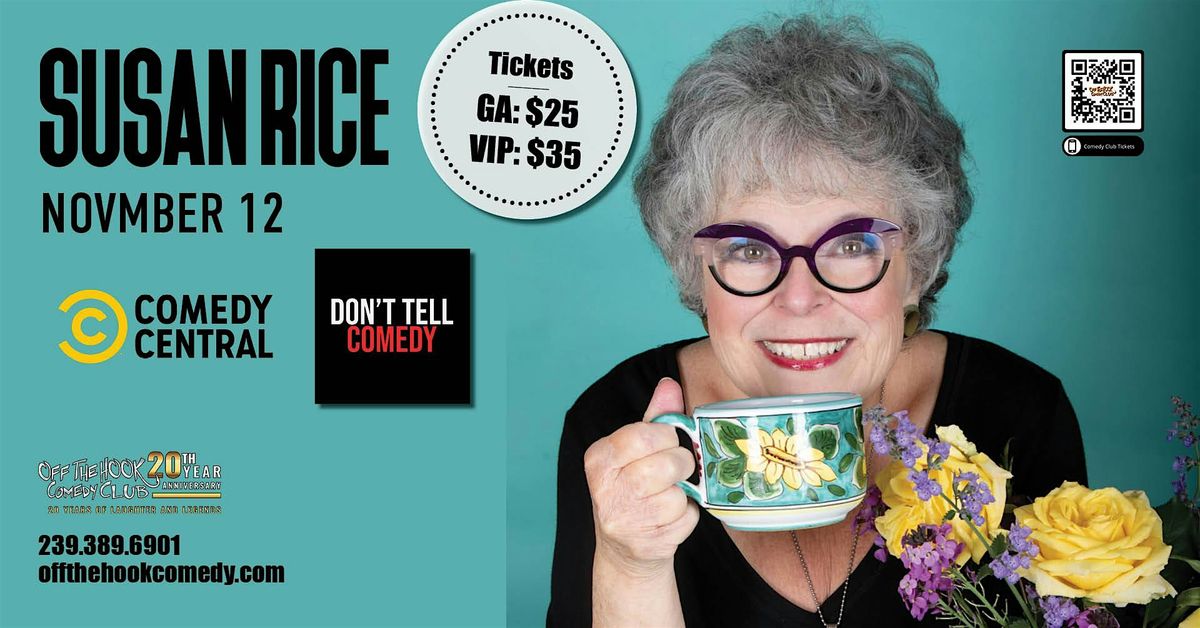 For over 41 years Susan Rice has been making people laugh. Starting in 1983, by 1986 she was living in Los Angeles and performing in comedy clubs all over the country. Her hard work paid off in 1989 when she got her first national credit on George Shlatter’s Comedy Club, Showtime Comedy All Stars and Comedy Central.