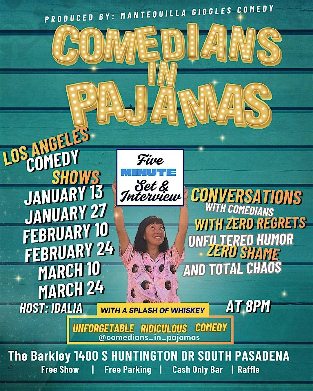 An awesome show where comedians perform a 5 minute set/ 5 minute interview, while wearing pajamas, with unfiltered conversations.About this Event