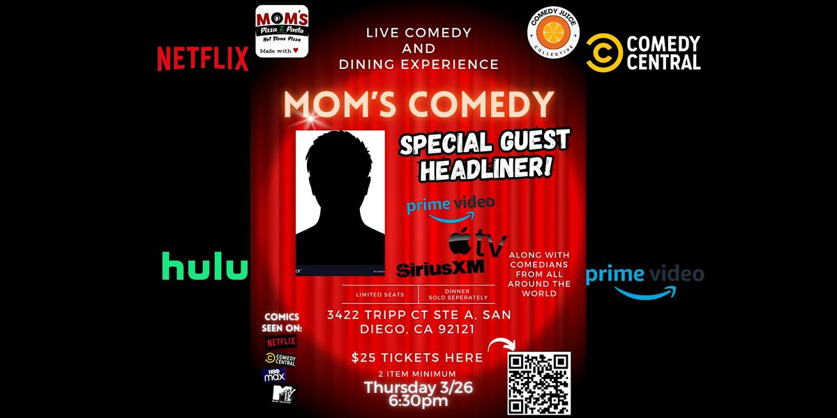 Join us at Mom’s Pizza & Pasta for an intimate live stand-up comedy show featuring hilarious comedians delivering their best material up close and personal. Whether you're planning a date night, a night out with friends, or just need a break from the usual routine, this is the perfect excuse to treat yourself.