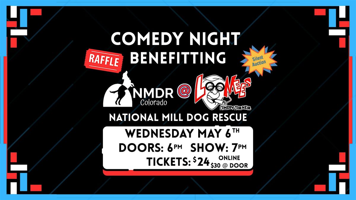 Comedy Night Benefitting National Mill Dog Rescue Based in Peyton, CO, Wed. May 6 at Loonees Comedy Corner, Silent Auction 6:30, Show 7:30!About this Event