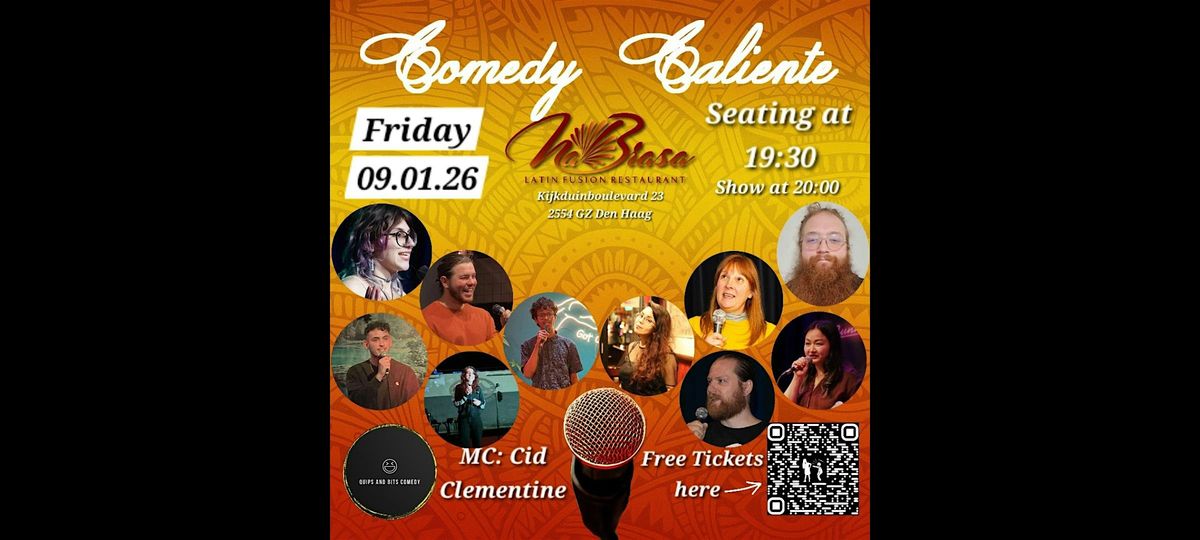 Get ready for a night of laughs at Comedy Caliente, a free English stand-up comedy open mic🎙 right by the seaside! Join us at Na Brasa 🌶, Kijkduinboulevard 23 in Kijkduin, Den Haag, for an evening of fresh jokes, big laughs, and a warm atmosphere.