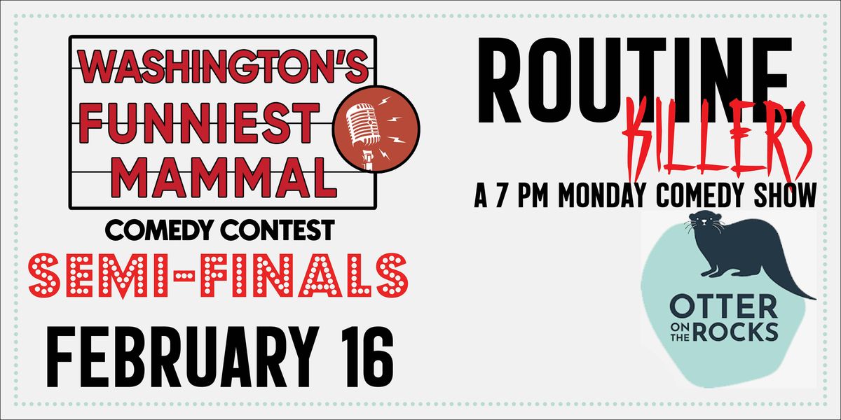 Feb 16! A live comedy competition experience! Semi Finals! Complete with audience INTERACTIVE VOTING systems; Washington’s Funniest Mammal Comedy competition Semi Finals ends at Otter on the Rocks! YOU’RE a comedy judge; the final boss! But you’re also the hero. You’re making or breaking someone’s dream; A room full of comedians desperate for their shot at the $2,500 top prize in finals, but sadly, what they’re more desperate for is your approval. It’s obvious they never earned their parents.