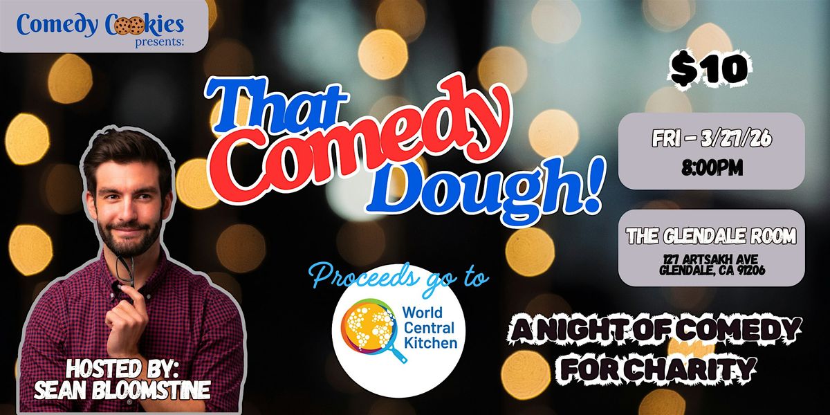 FRIDAY 3/27/26 at 8:00p (Doors at 7:45p)!!! Join us at the Glendale Room for a night of comedy and fresh baked cookies. Proceeds go to the World Central Kitchen.