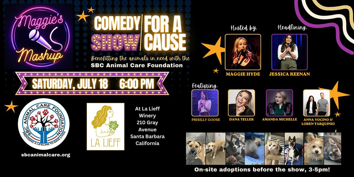 Maggie's mashup presents a standup comedy show benefiting the Santa Barbara Animal Care Foundation at La Lieff winery in downtown Santa Barbara!