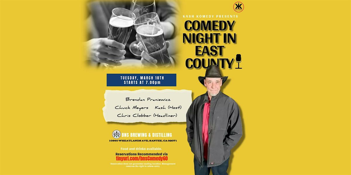Who's ready to come out to Santee and enjoy a comedy show and have a good laugh. The next comedy show is planned for Tuesday March 10th at 7.00pm at BNS Brewing & Distilling Co. in Santee. I hope you can make it. The show will start at 7.00 pm but I would recommend getting there early since seating is on a first come first serve basis. We have the hilarious Chris Clobber headlining this show, so you don't want to miss this one.