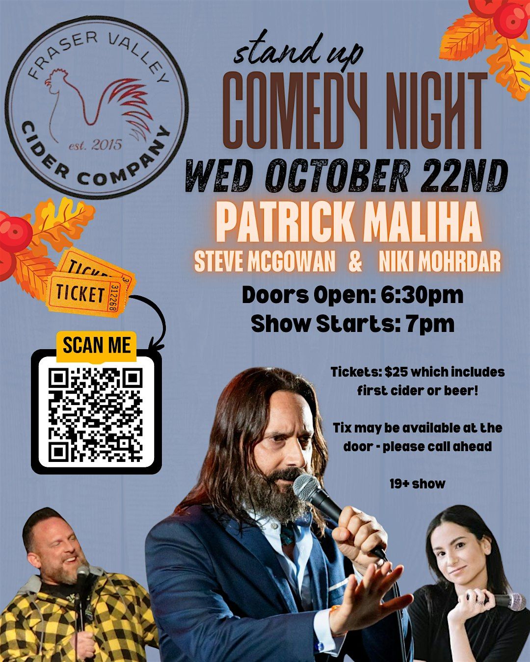 Get ready for a night full of laughter! Join us for our first Comedy Night featuring a lineup of hilarious comedians ready to keep you laughing all evening long. Come and enjoy food and drink and comedy stylings of Patrick Maliha, Steve McGowan and Niki Mohrdar.