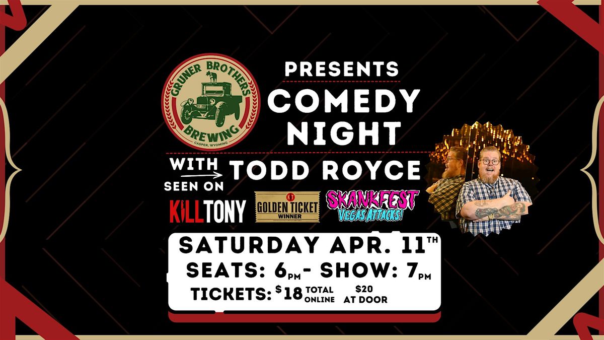 Comedy Night at Gruner Bros. With Todd Royce, K*ll Tony Golden Ticket, Nationally Touring Comic, and much more Sat. April 11th, Show 7pm!About this Event