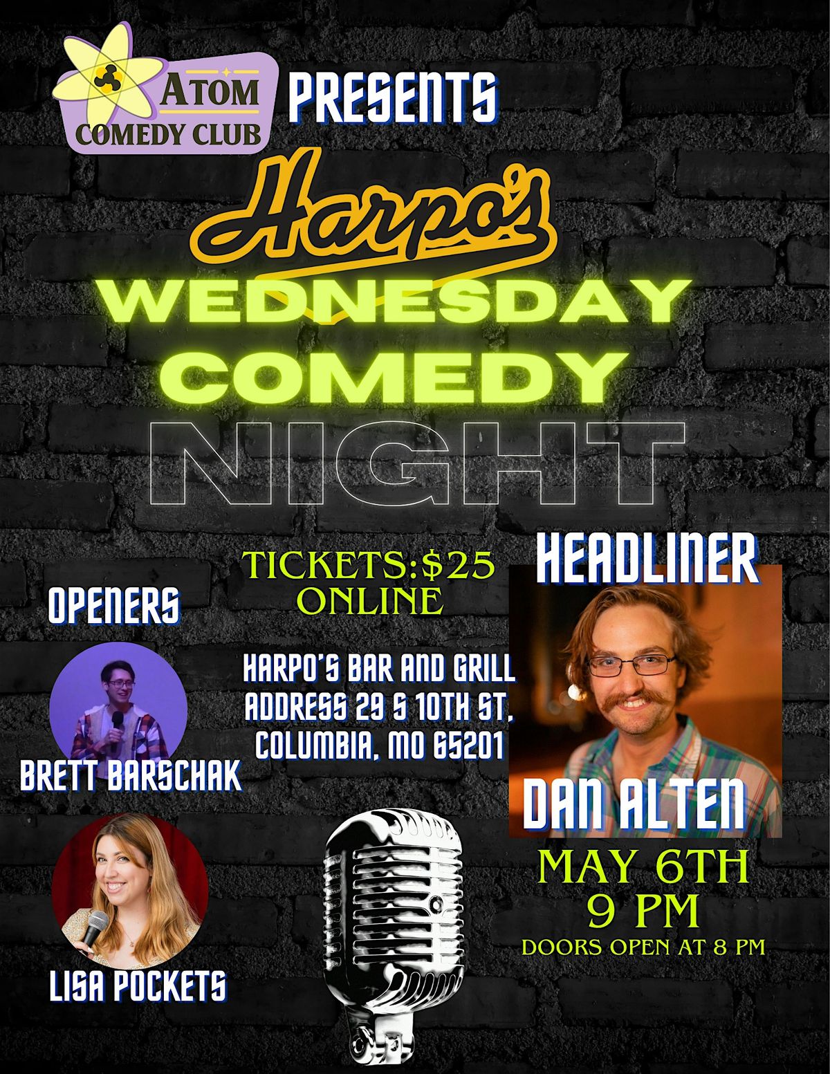 Get ready for a night full of laughs at Harpo's! Join us in person for an unforgettable Comedy Night where the best local comedians will keep you entertained all evening. Whether you’re coming with friends or flying solo, it’s the perfect way to unwind and enjoy some hilarious stand-up. Don’t miss out on the fun — bring your good vibes and get ready to laugh till it hurts!