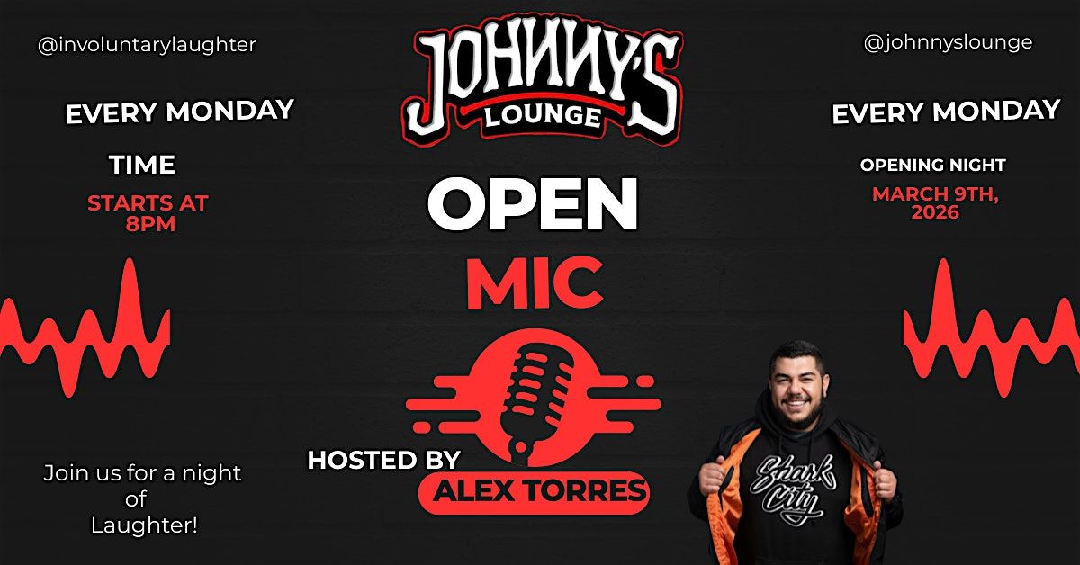 Get ready for a fun and laugh-packed evening at Johnny's Lounge with your Host ALEX TORRES! Join us on March 9th, 2026 at 10:00 AM (PDT) for some awesome stand-up comedy and fun insights. Whether you're coming with friends or flying solo, this is the perfect chance to kick back, enjoy great drinks, and have a blast. Don’t miss out on the laughs and good times!