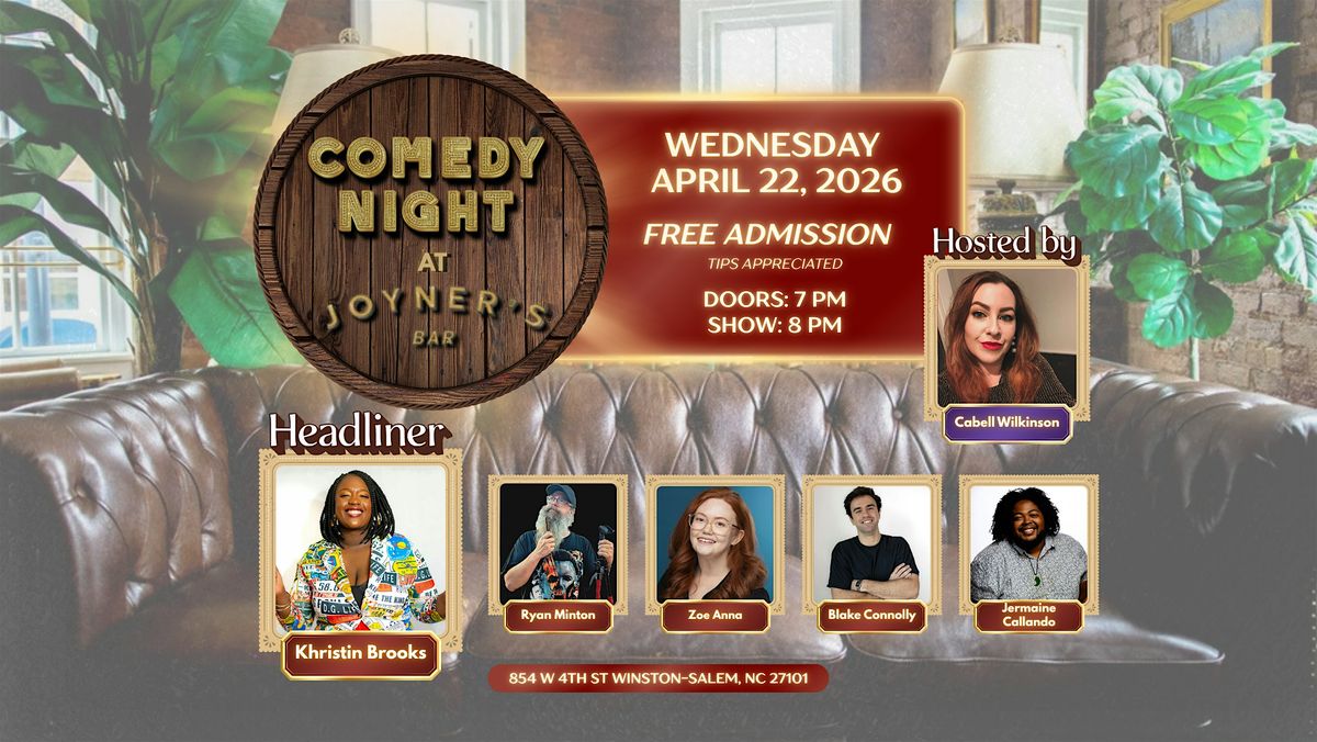 Free comedy night at Joyner’s Bar! NC’s funniest comics, cozy upstairs vibes, and great drinks!