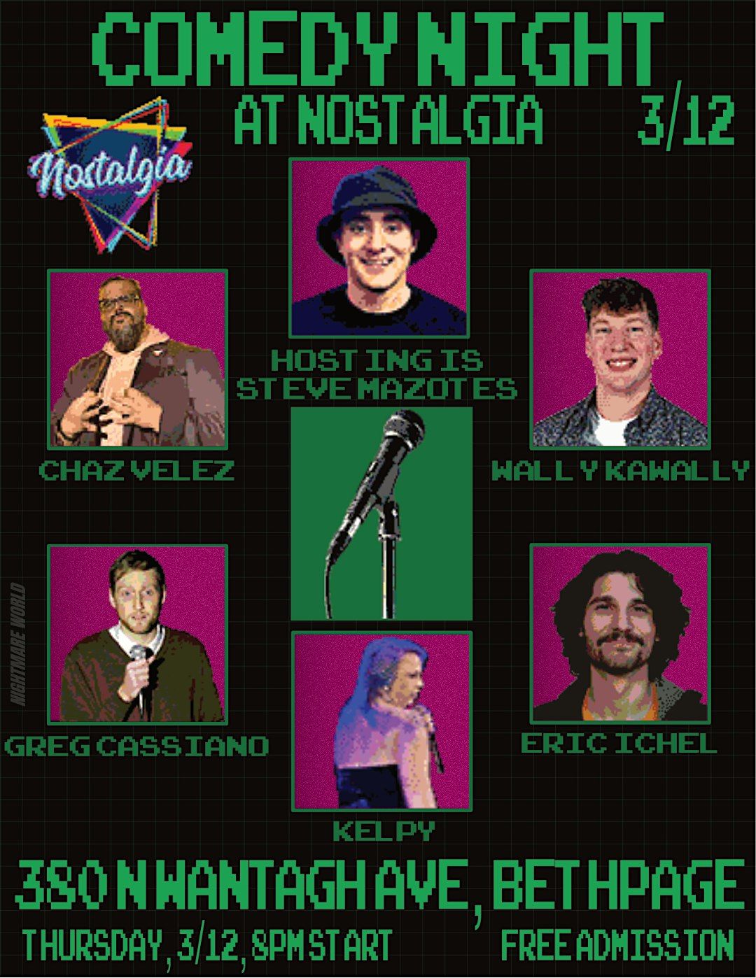 Stand Up Comedy Show at Nostalgia in Bethpage on March 12th! The show begins at 8PM so arrive anytime before that! The show is free so just support the bar by buying drinks, and/or, food!