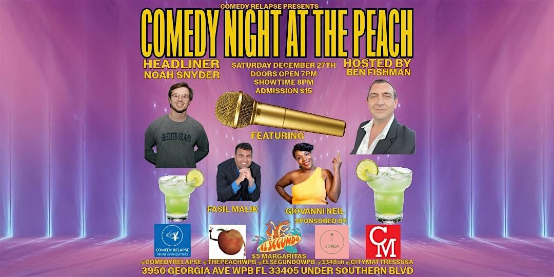 The Peach and Comedy Relapse have been producing some of the best comedy shows in west palm beach for the last 2 years. Headlining comics from New York California and Chicago have taken the stage at the Peach. This is Noah's second time performing at the Peach. His last performance was sold out. We look forward to seeing you there.