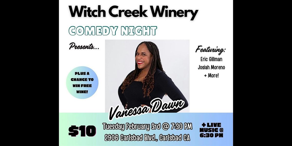 Get ready for a night full of laughs and good vibes at Witch Creek Winery! Join us in person for an evening of hilarious stand-up, great company, and, of course, amazing wine. Whether you're a comedy fan or just looking for a fun night out, this event is the perfect way to unwind and enjoy some local talent. Don't miss out on the fun—bring your friends and let's make it a night to remember!