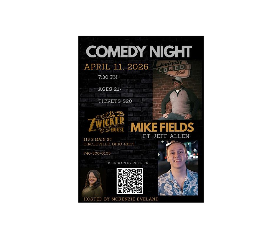 Get ready for a night of laughs and good vibes at Zwicker House! Join us for a special Comedy Night hosted by McKenzie Eveland with Mike Fields ft. Jeff Allen. Must be 21 or older to attend. There will be food, drinks, and plenty of laughter — so come hungry, come thirsty, and come ready to laugh!