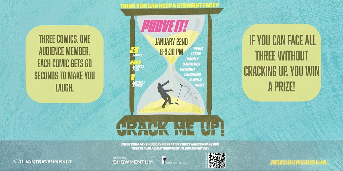Three comics. One audience member. Each comic gets 60 seconds to make you laugh. If you can face all three without cracking up, you win a prize!