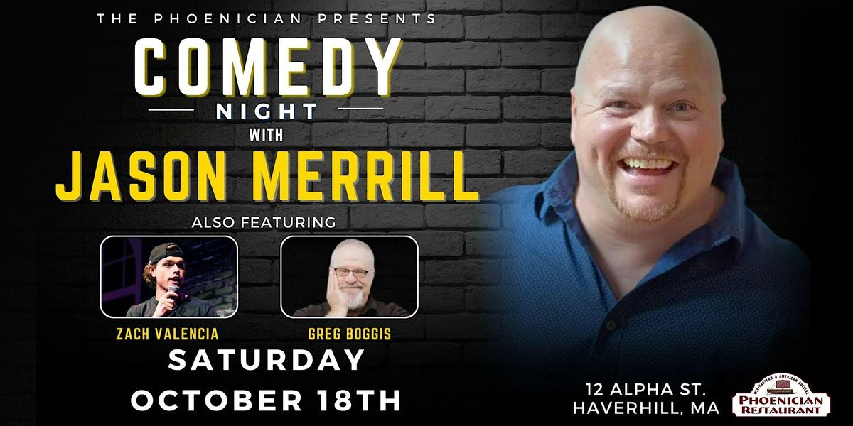 Join us at The Phoenician in Haverhill, MA on Saturday, October 18th for a night of nonstop laughs in our event hall, headlined by the wickedly funny Jason Merrill!