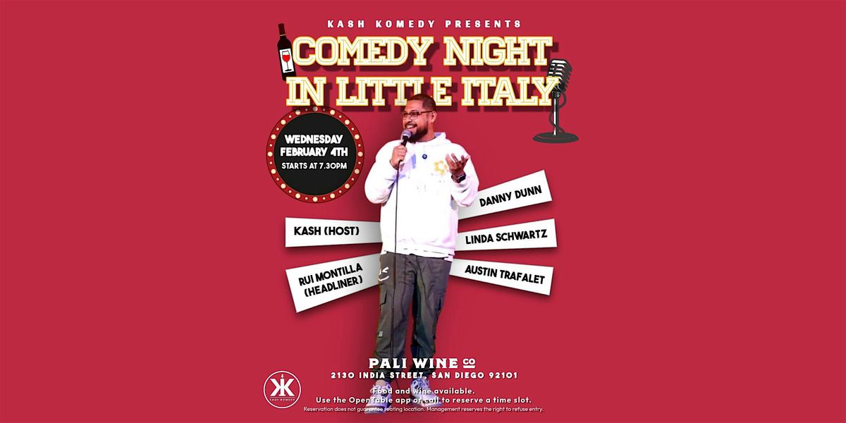 Do you like Wine and Comedy? Then come out to Little Italy for a night of laughter at Pali Wine Co. where you can enjoy some great tasting wine and some good laughs. There is a different lineup every week so you can enjoy a new comedy experience with each show. The show is produced and hosted by Kash Komedy and features some of San Diego and LA's funniest comics.