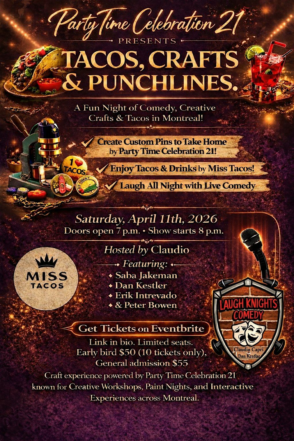 Tacos, Crafts & Punchlines A Fun Night of Comedy, Creativity & Tacos in Montreal