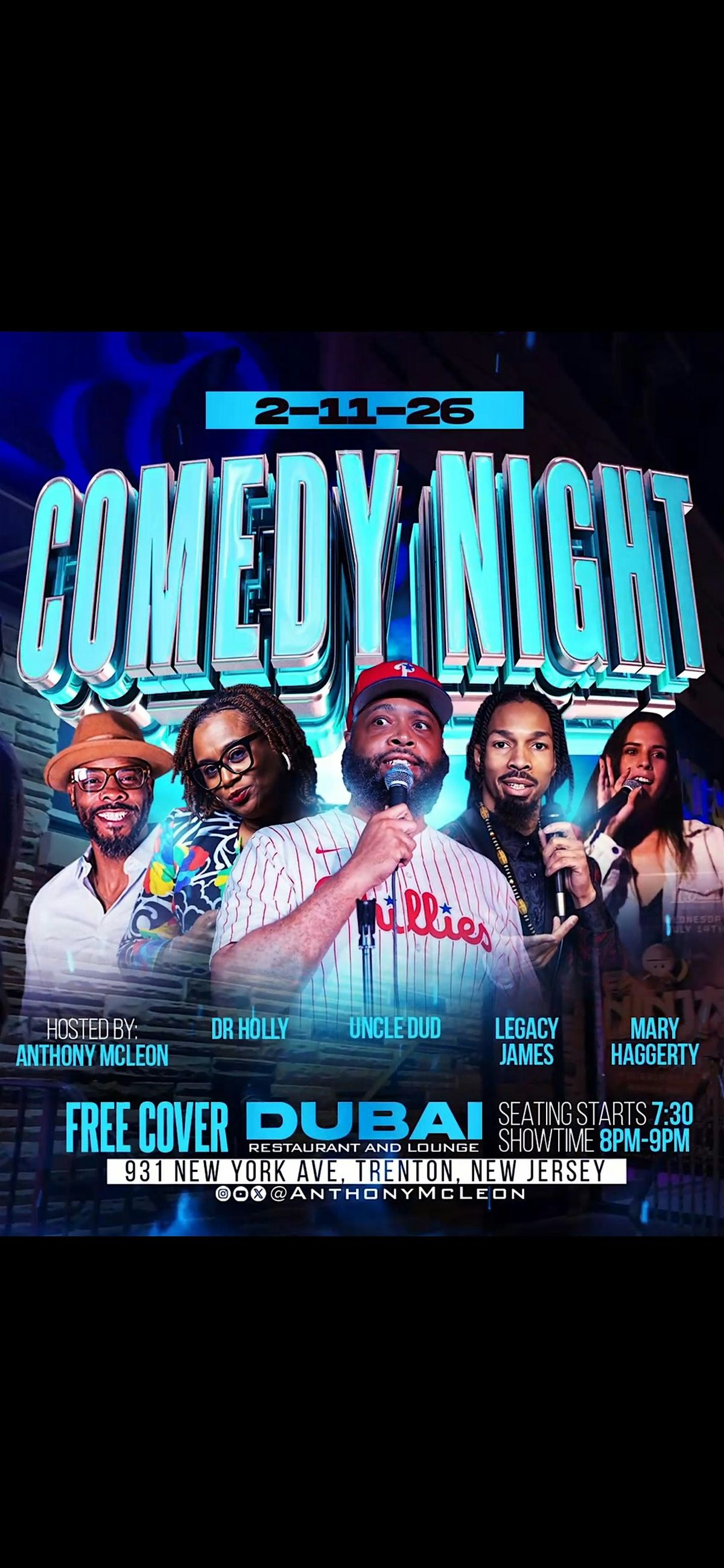 Get ready to enjoy yourself Wednesday 2-11-26 at our Comedy Night right here in Trenton,New Jersey. Join us in person for an evening full of laughs, good vibes, and hilarious performances. Whether you're coming with friends or flying solo, it's the perfect midweek escape to chill and enjoy some top-notch stand-up comedy. Don’t miss out on the fun — see you there!