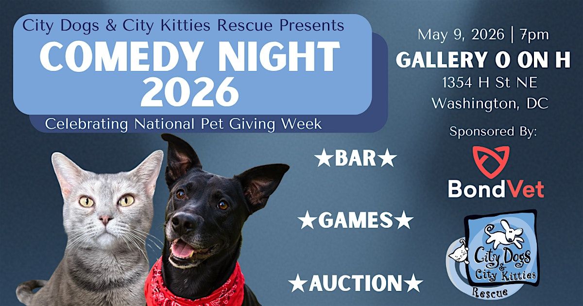 Come laugh and save lives with City Dogs & City Kitties Rescue! For one night only, you'll be able to enjoy comedians and save pets in need!