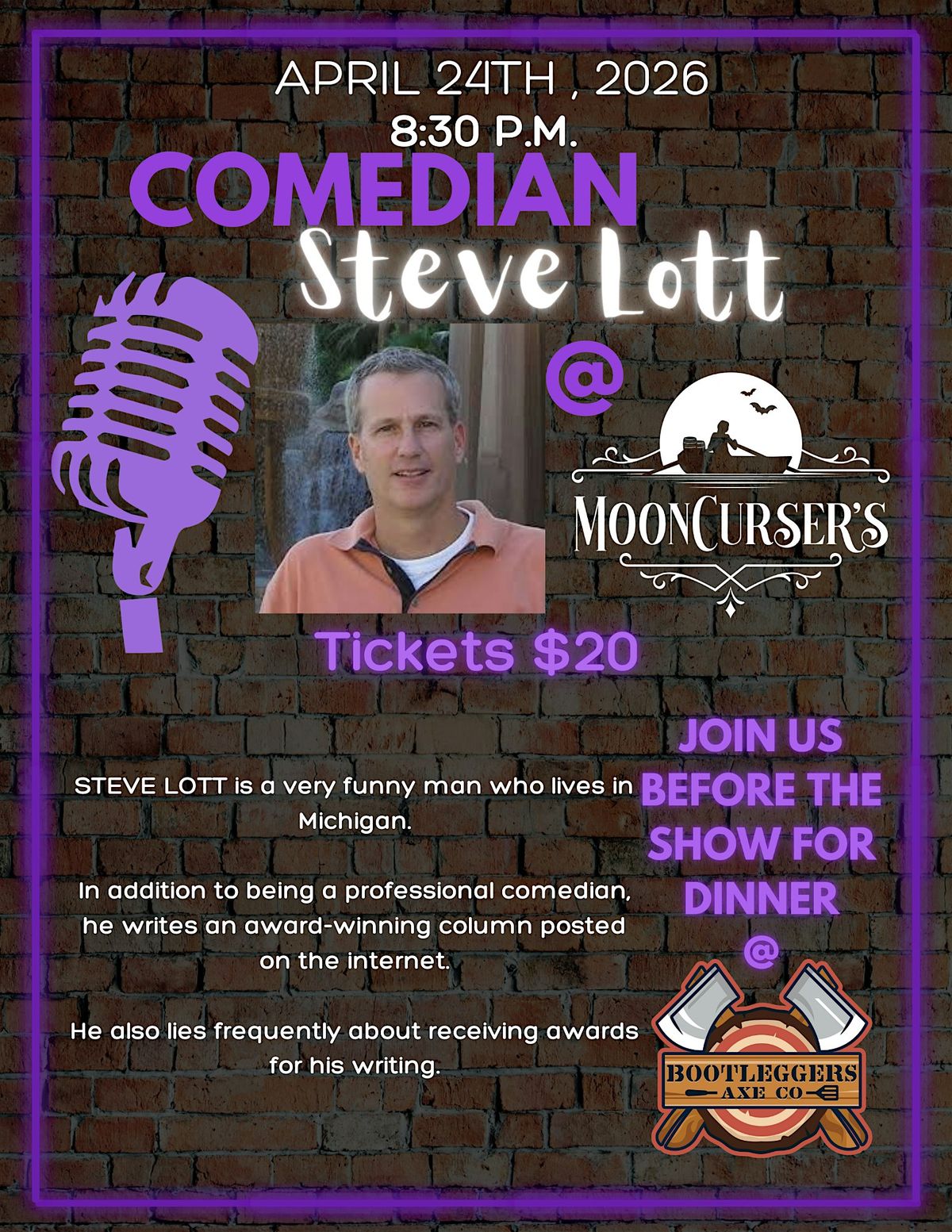 Comedy Night with Steve Lott @ Bootleggers Axe Co.