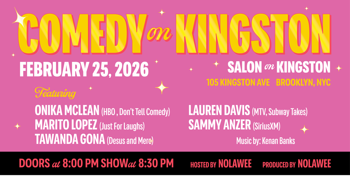 🎉 Get ready to laugh your way through the night at our second Comedy on Kingston stand-up show of 2026! Join us on FEBRUARY 25th, at the unique and vibrant Salon on Kingston, nestled within the charming neighborhood of Crown Heights, Brooklyn.
