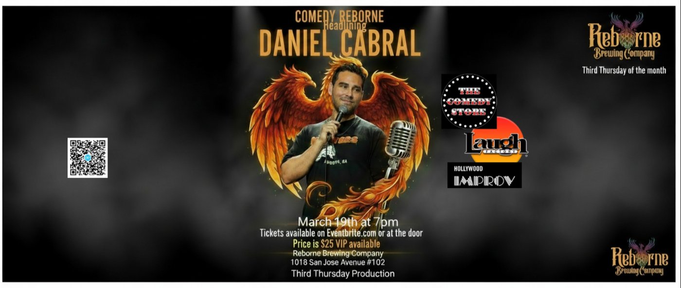 Get ready for a night full of laughs at Reborne Brewing Company! Join us on March 19, 2026 at 7:00 PM (PDT) for an awesome comedy show featuring the hilarious Daniel Cabral. Bring your friends, grab a drink, and enjoy some top-notch stand-up in a chill, in-person setting. Don’t miss out on this fun evening of great vibes and even better jokes!