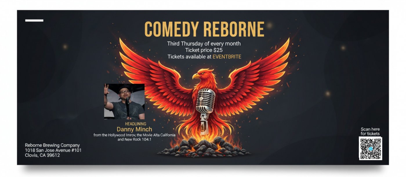 Welcome to Comedy ReBorne! Get ready for a hilarious night headlined by the one and only Danny Minch at Reborne Brewing Company. Join us on February 19, 2026 at 7:00 PM (Pacific Time) for an evening filled with laughter and good vibes. Don't miss out on this fantastic event!