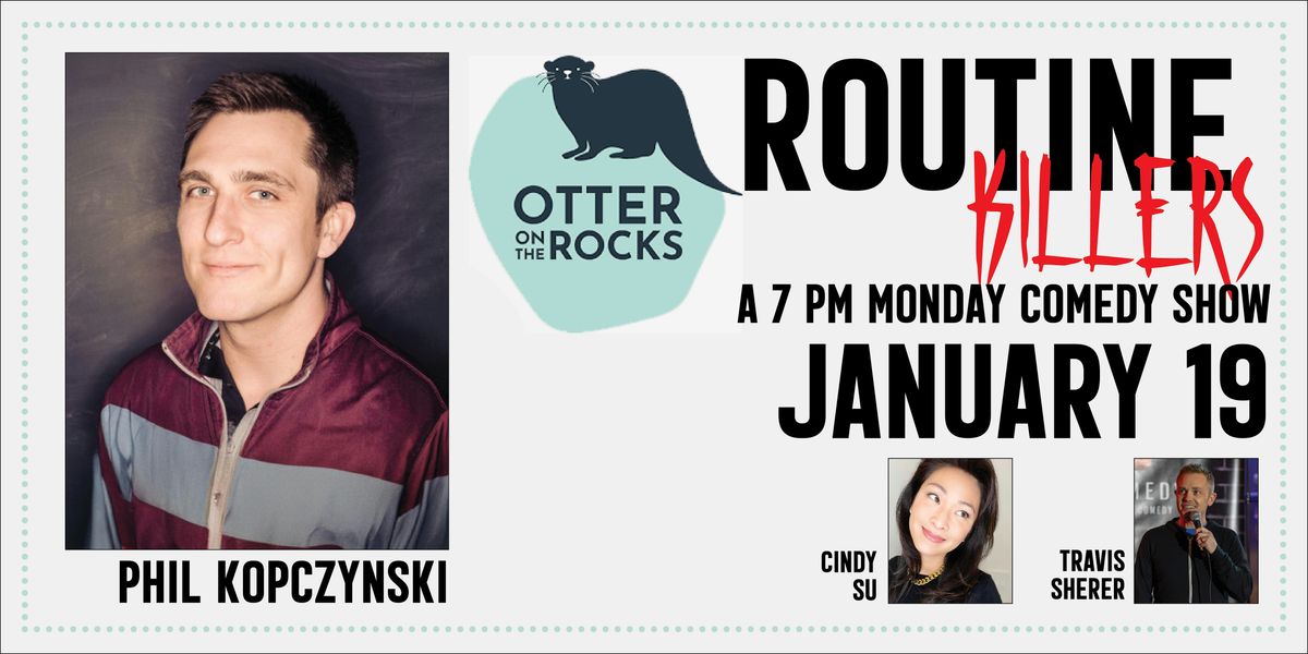 Monday January 19th! Headlining comedy returns to Otter on the Rocks! Our hit monthly monday night comedy show is back with national headliner Phil Kopczynski (Drybar Comedy, Comedy Dynamics, Seattle International Comedy Competition)! Up and coming feature act Cindy Su (Nate Jackson’s Funniest MF’er) joins the show with returning Cozy Comedy host Travis Sherer!